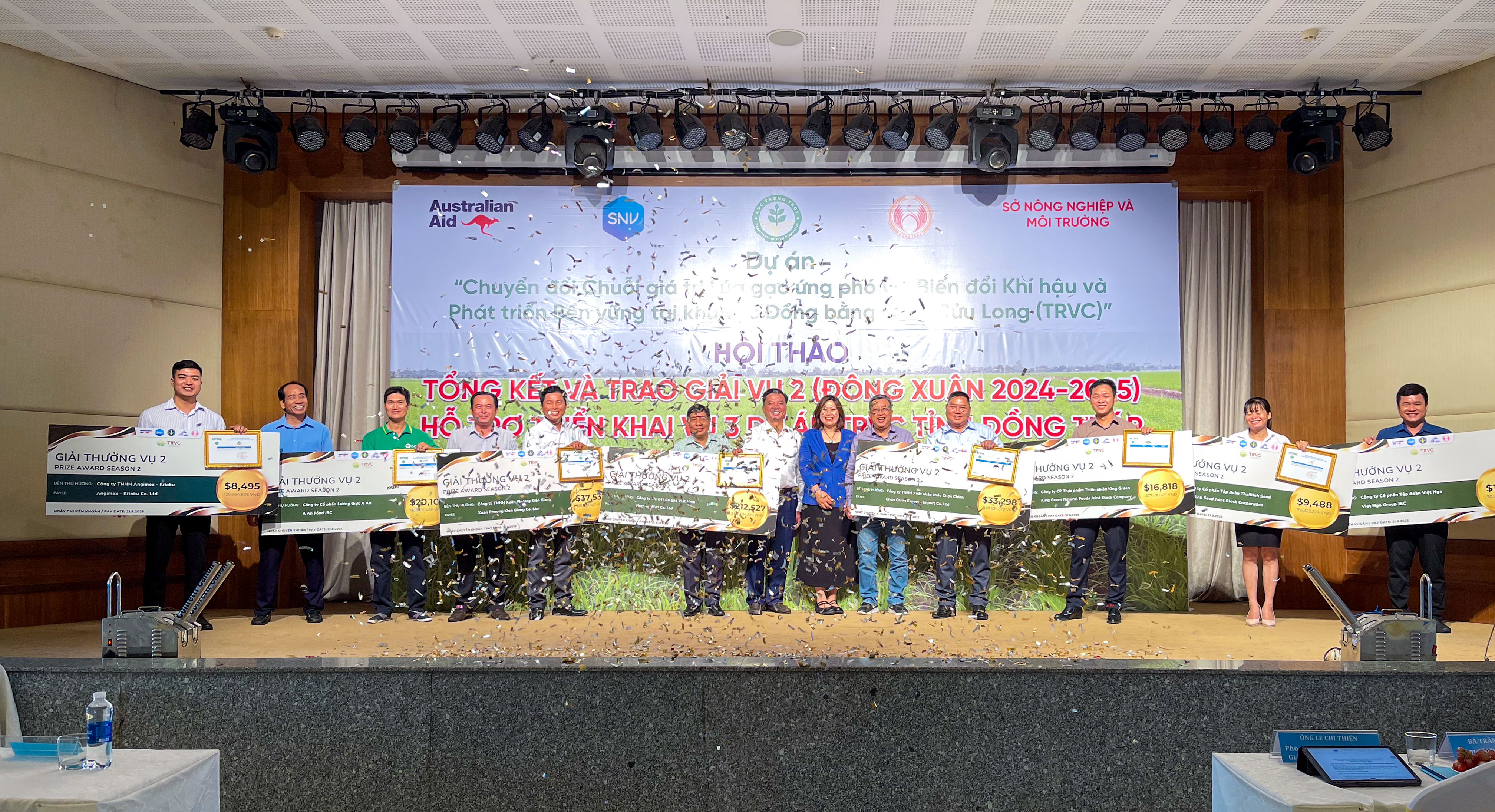 Dự án “Chuyển đổi chuỗi giá trị lúa gạo ứng phó với biến đổi khí hậu và phát triển bền vững ở khu vực Đồng bằng sông Cửu Long (TRVC)” do Bộ Ngoại giao và Thương mại Úc tài trợ, được Tổ chức Phát triển Hà Lan (SNV) triển khai trong giai đoạn 2022–2027, nhằm thúc đẩy phát triển chuỗi giá trị lúa gạo bền vững, giảm phát thải và gia tăng các giá trị xã hội bao trùm.